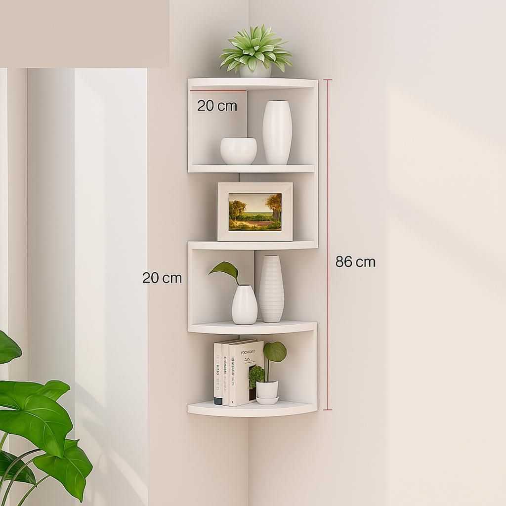 Transforma las esquinas vacías de tu hogar en espacios de almacenamiento elegantes con este estante flotante de 5 niveles. Perfecto para departamentos y casas en Chile donde cada centímetro cuenta.
