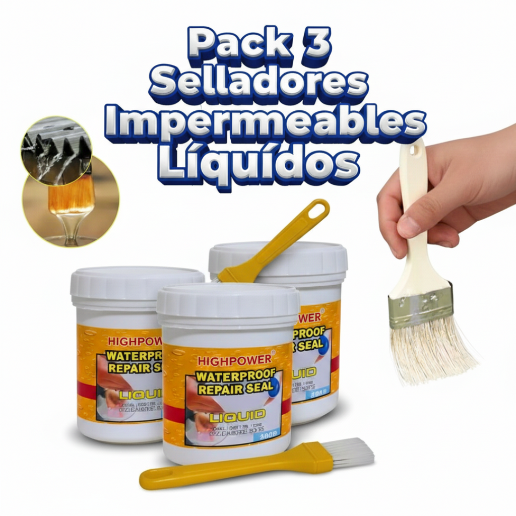 Soluciona filtraciones, grietas y fugas con este pack de 3 selladores impermeables líquidos de alta resistencia. Ideal para techos, paredes, tuberías y más en Chile.