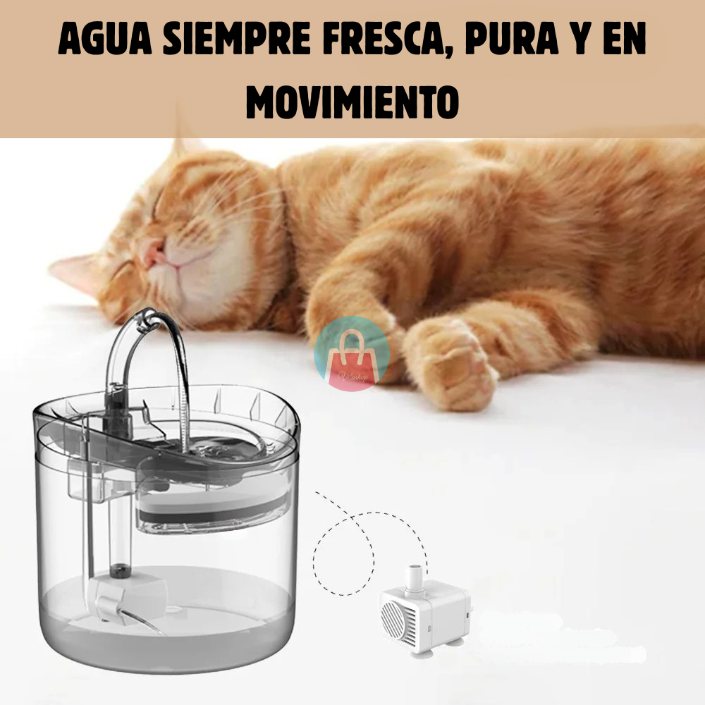 El Bebedero Automático para Mascotas es una solución práctica y efectiva que mantiene el agua en movimiento constante, limpia y fresca todo el día. y te ayuda a prevenir problemas renales y urinarios en tus gatos.